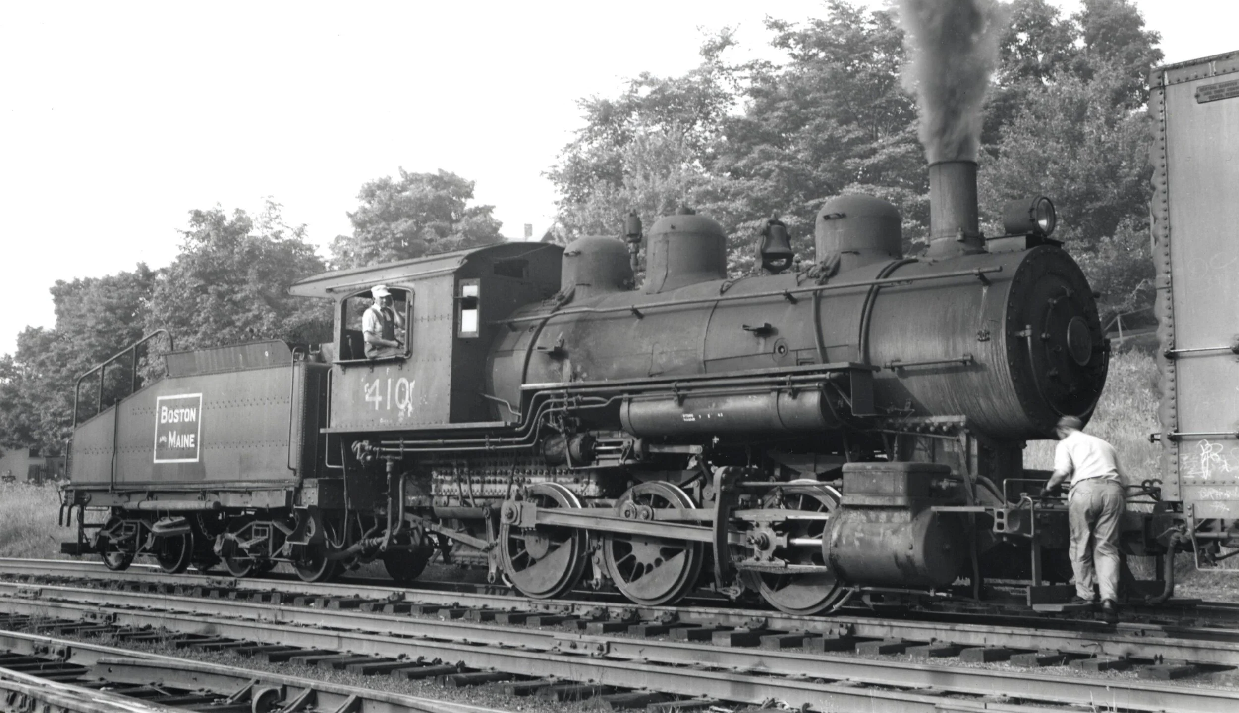 The 410 was built by the Manchester Locomotive Works at Manchester, N.H., in June 1911. This locomotive did switching duty at Lowell and other locations on the B&M during her active days on the railroad. A switching locomotive is designed to deliver cars of raw materials from the railroad yard to local industries, to pick up loaded and empty cars, and to make up and break down intercity trains that will be moved to distant destinations by larger, more powerful “road engines.” The 410’s short wheelbase was particularly useful in navigating the tight curves and narrow clearances of the industrial tracks that wound through the streets and alleys of Lowell.