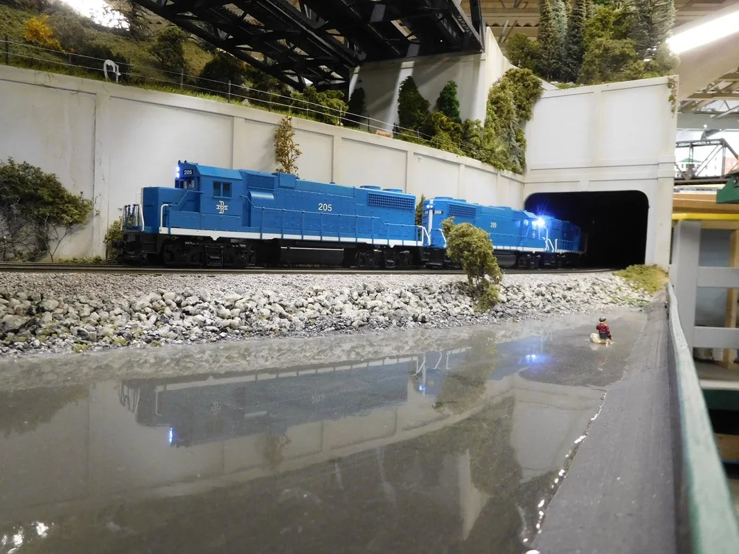 The Southern New England Model Railroad is an O-Scale 2-rail club located in Gardner Massachusetts, measuring 40 x 65 feet. The state-of-the-art design results in a walk-around model railroad, using the “mushroom” technique to greatly increase the running length of the 850’ double-track main line.