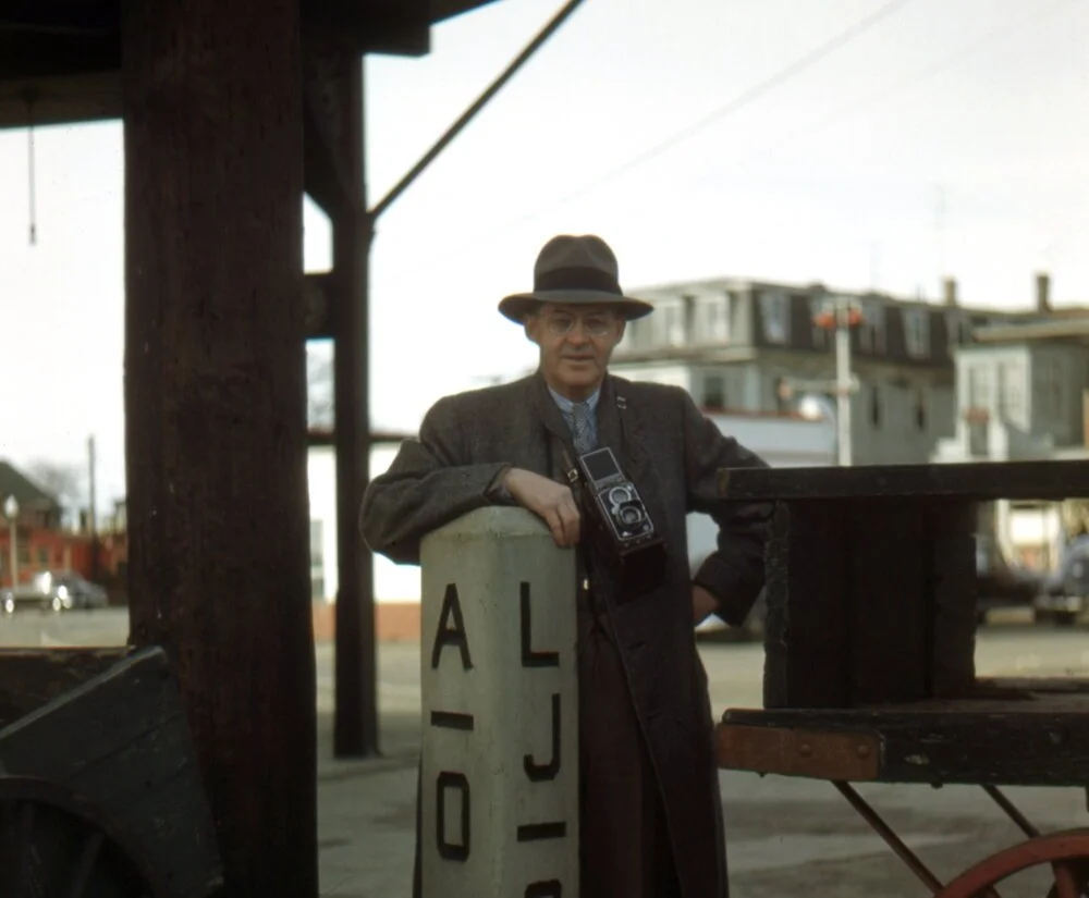 Born in 1898, Dana D. Goodwin’s life spanned the majority of the Boston and Maine’s independent existence and, as such, Dana was one of the railroad’s most prominent chroniclers. Dana was a native and resident of Fitchburg, MA, and covered the Fitchburg Division Mainline more extensively than nearly anyone else, capturing timeless images of steam power thundering up Ashburnham Hill and reposing in the East Fitchburg enginehouse. His connections and friendships with other notable enthusiasts such as H. Arnold Wilder took him on trips spanning the B&M system and across the country as a whole. In fact, while much of the Dana D. Goodwin Collection focuses on the B&M and other New England roads, the majority covers other regions and Canadian railroads as well, with which Dana was particularly enamored. A steadfast member of the Railroad Enthusiasts (RRE) from its beginning allowed photographic coverage of excursions and fantrips. As the B&M passed from a titan of the transportation industry into bankruptcy and disrepair, Dana covered the hard times as well; when a wreck happened on the B&M, it was said he would arrive before the railroad officials! Dana D. Goodwin passed away in 1982, ironically the final full year of independence for the Boston & Maine Railroad before its purchase by Guilford Transportation Industries. In the years leading up to and following his death, the Boston & Maine Railroad Historical Society acquired by donation Dana’s collection, including photographs, negatives, slides, and film.